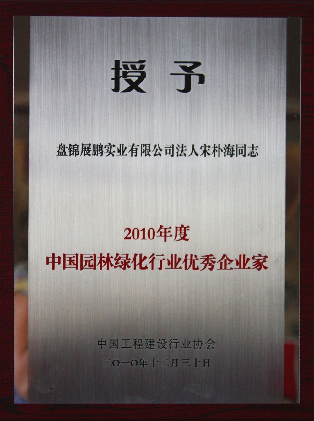 2010中國(guó)園林綠化行業(yè)優(yōu)秀企業(yè)家