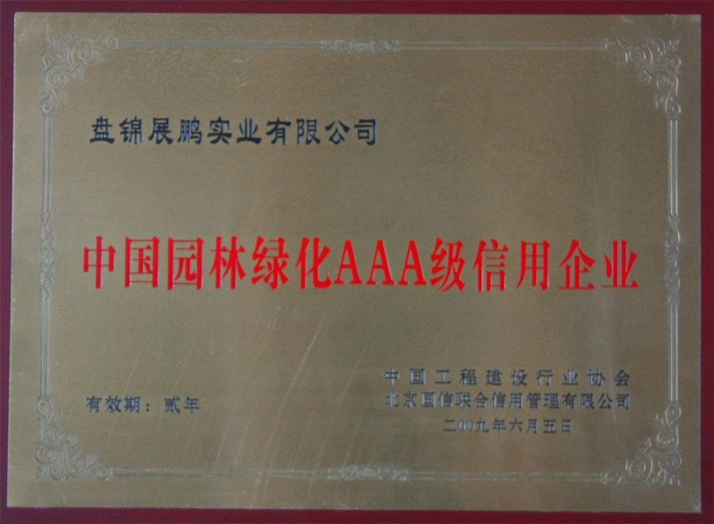 展鵬實業(yè)中國園林綠化AAA級信用企業(yè)