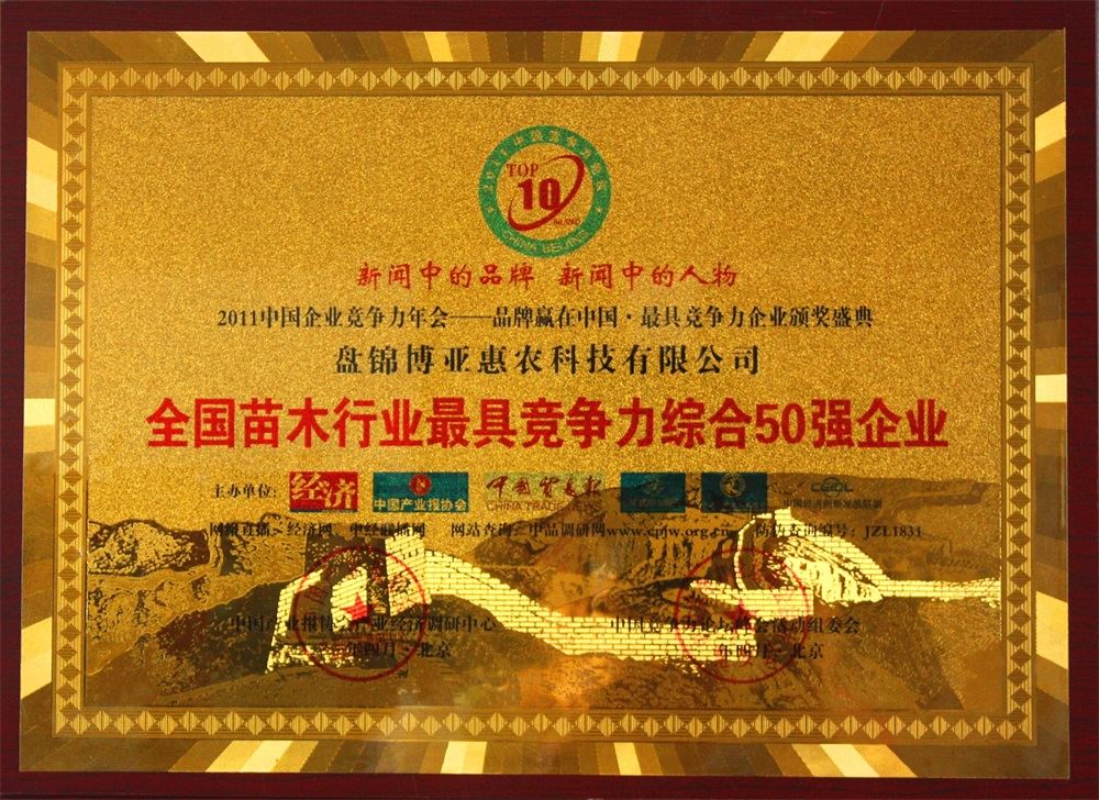 全國苗木行業(yè)最具競爭力綜合50強(qiáng)企業(yè)