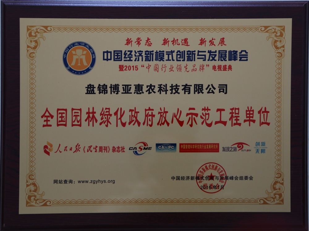 全國園林綠化政府放心示范工程單位