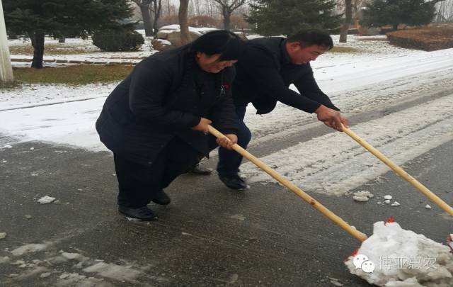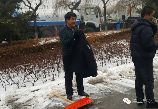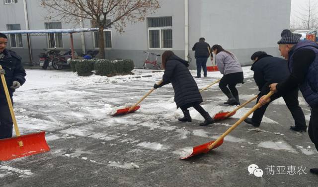 大家不畏嚴(yán)寒,積極參加,紛紛拿起鐵鍬和掃帚,一點一點地把積雪集中堆放,然后再用車把積雪運出去。整個掃雪過程中,大家配合默契,干的熱火朝天,不亦樂乎。每個人都把公司當(dāng)成自己的家,每個人的臉上都洋溢著最簡單的微笑,勞動的熱情和團結(jié)的力量讓這個冬日變得格外溫暖,忙碌的身影形成了一道美麗的風(fēng)景。經(jīng)過一個多小時的奮戰(zhàn),積雪全部鏟除,我們開辟出一條洋溢著溫情的通暢之路。