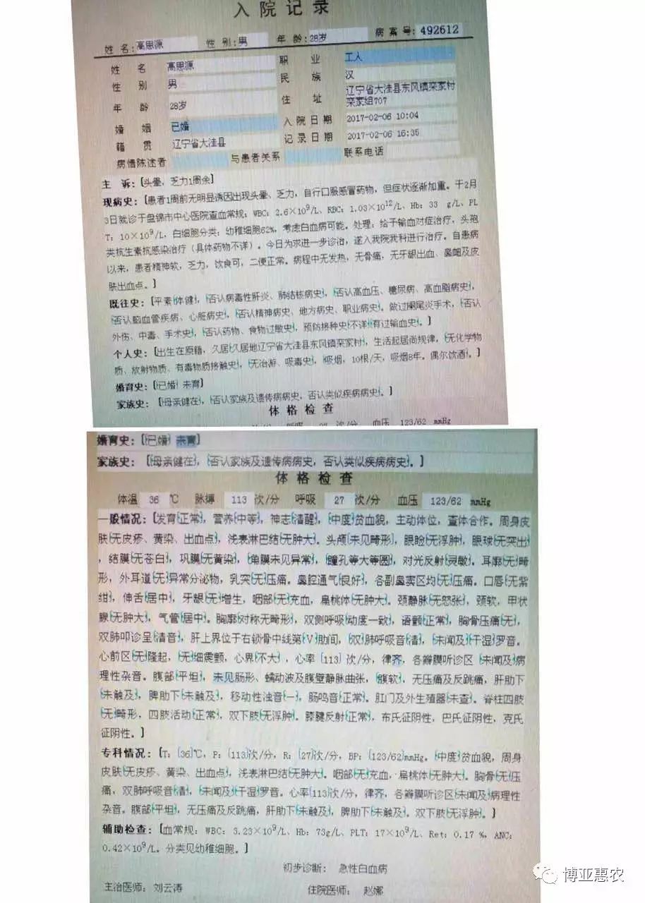 “擁有完整的家庭和幸福的生活”是每個(gè)人的夢想。但是,您可知道,春節(jié)還沒過完,就在我們身邊,我們的同事,展鵬集團(tuán)下屬博亞惠農(nóng)科技有限公司下洼子苗圃28歲的高思源卻患上了急性白血病,必須天天輸血維持生命。