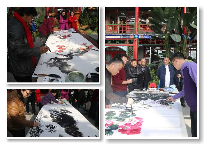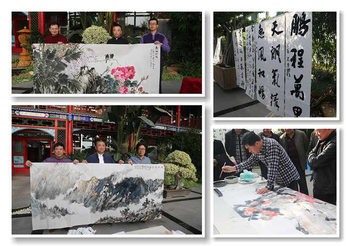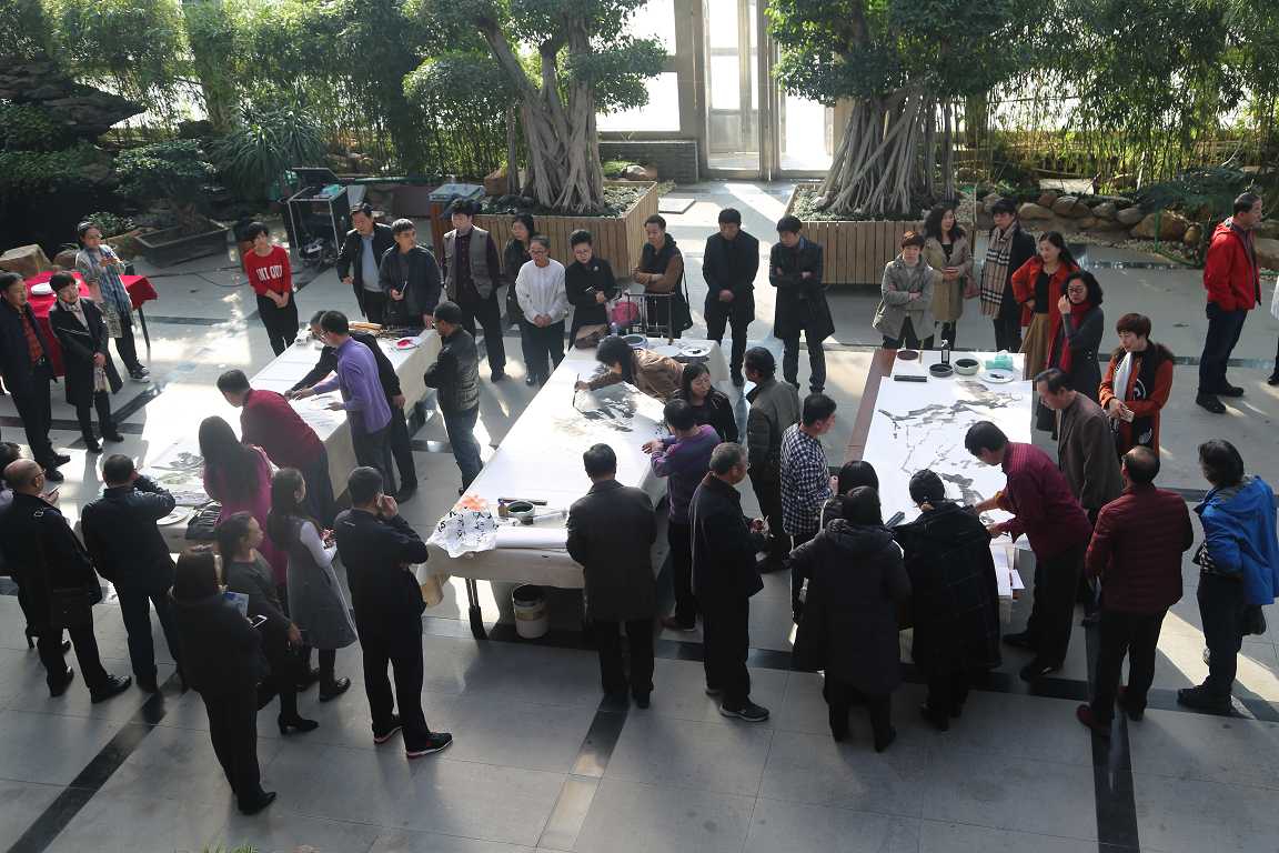 會后,省內(nèi)外的書畫藝術(shù)家們相互切磋書畫技藝,一幅幅漂亮的書畫作品一氣呵成,讓與會者頻頻點(diǎn)贊。穆安亮、薛居波、陳薪名聯(lián)袂創(chuàng)作了大型畫卷《惠風(fēng)和暢》,張學(xué)信、金明惠、劉仁合作完成了《溪山云淡》,林偉、張紅星共同創(chuàng)作了《事事如意》,把年會推向了高潮,呈現(xiàn)出藝林雅集的盛況,也飽含著藝術(shù)家們對傳統(tǒng)文化的美好祝愿。各地藝術(shù)家聯(lián)袂創(chuàng)作,同繪藝術(shù)繁榮的宏偉藍(lán)圖,成為本屆盛會的一大亮點(diǎn)。